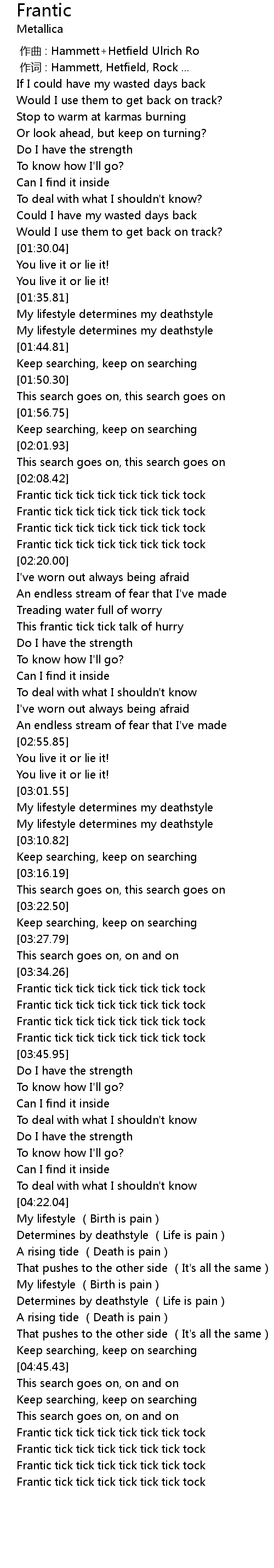 | [03:40.07] | Frantic tick tick tick tick tick tick tock |
