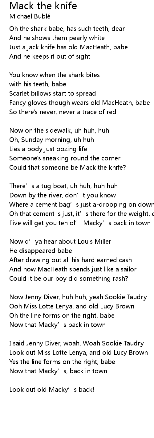 | Ooh Miss Lotte Lenya, and old Lucy Brown | |