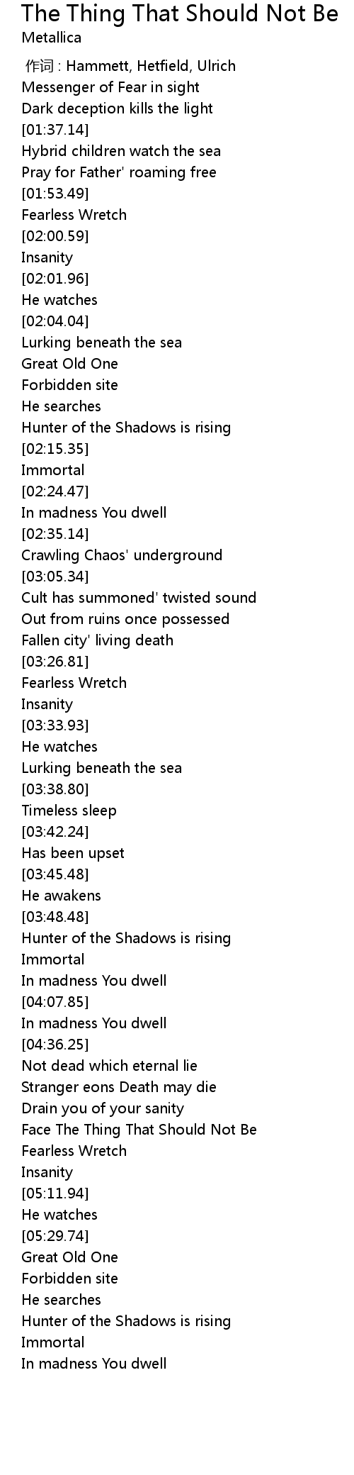 | [05:02.64] | Face The Thing That Should Not Be |