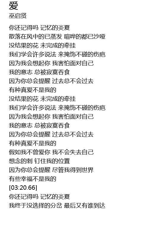 | [03:22.73] | 你还记得吗 记忆的炎夏 |