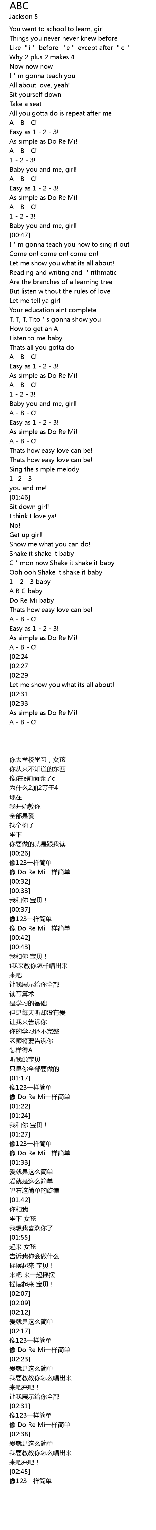 | [02:45][02:31] | A B C! |