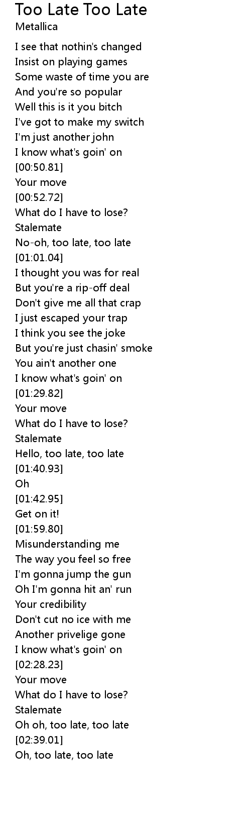 Oh, too late, too late |
