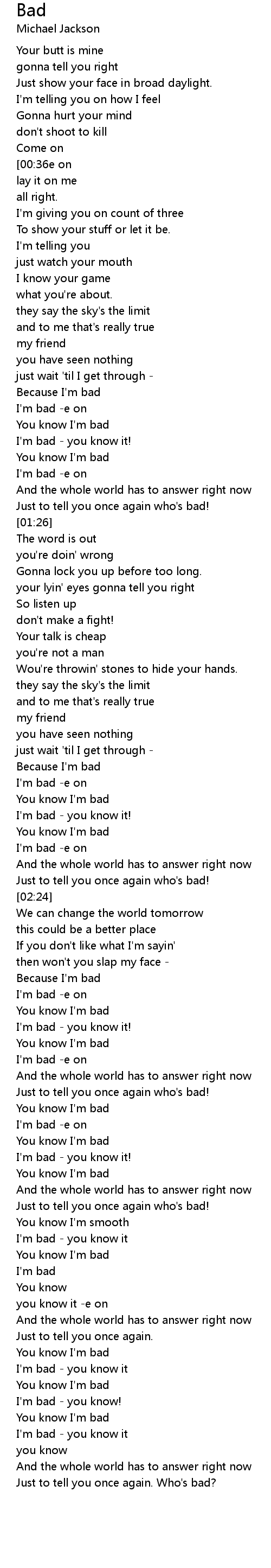 Just to tell you once again. Who's bad? |
