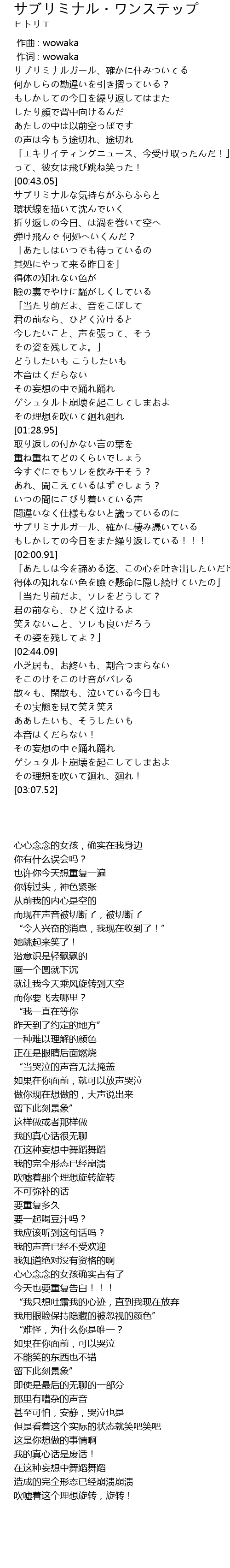 | [00:44.93] | サブリミナルな気持ちがふらふらと |