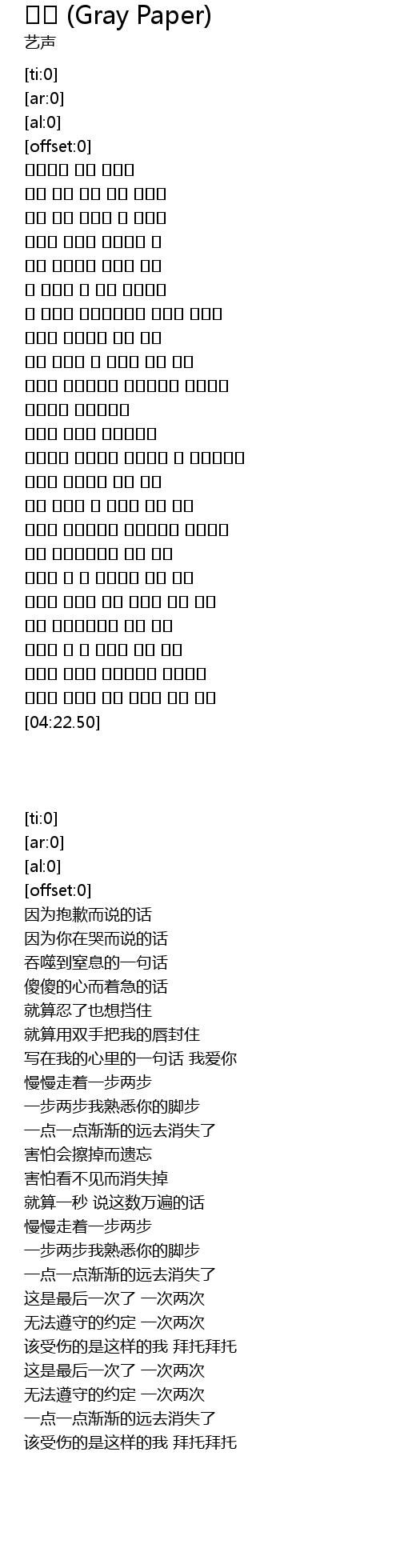| [03:42.97] | 이게 마지막이라고 한번 두번 |