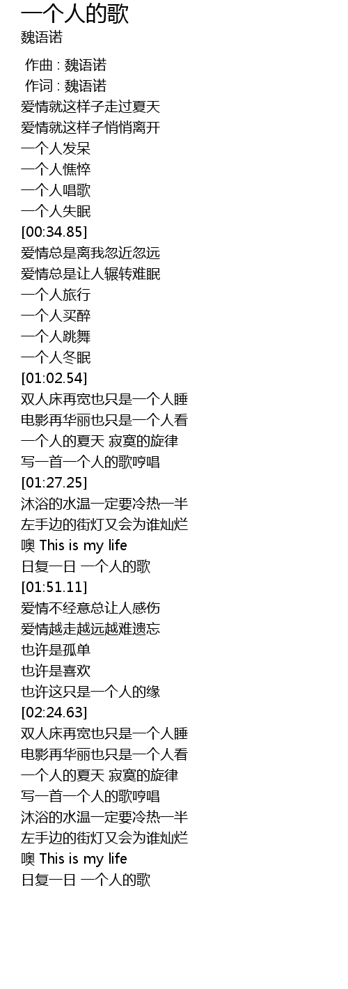 | [02:44.29] | 写一首一个人的歌哼唱 |