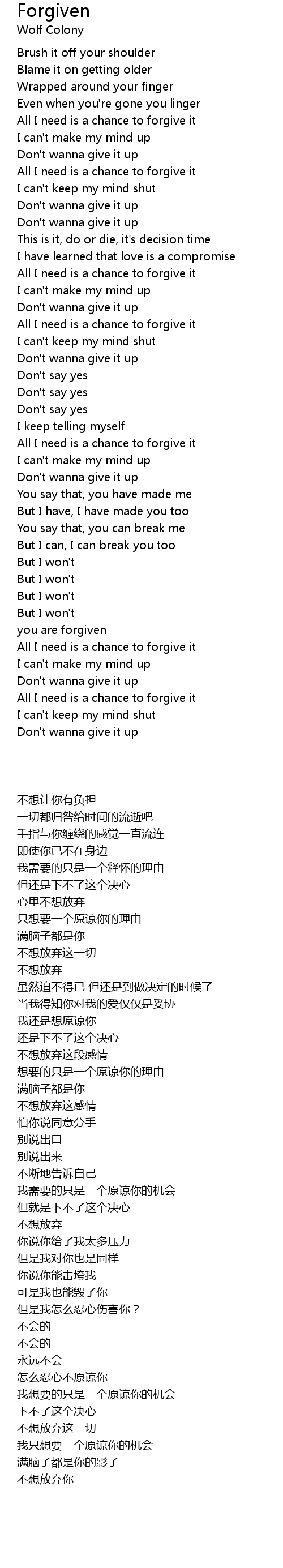 All I need is a chance to forgive it |