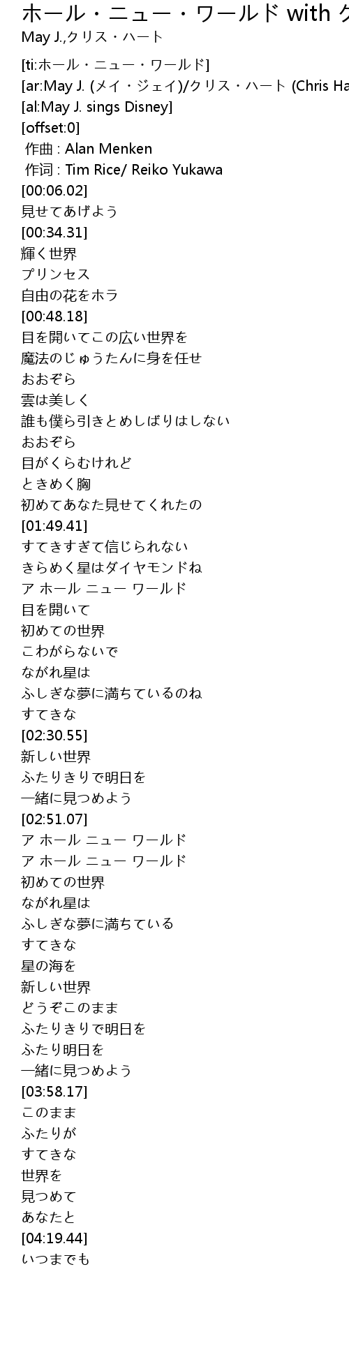 | [ti:ホール・ニュー・ワールド] | |