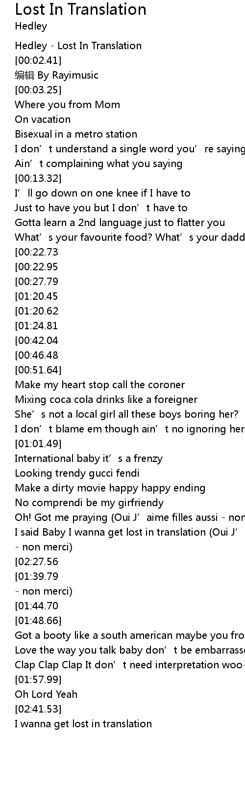| [00:02.04] | Hedley - Lost In Translation |