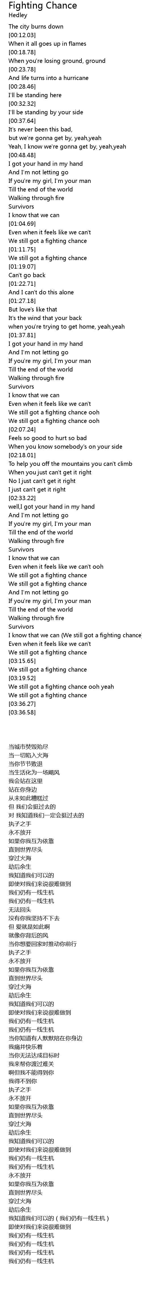 | [03:21.68] | We still got a fighting chance ooh yeah |