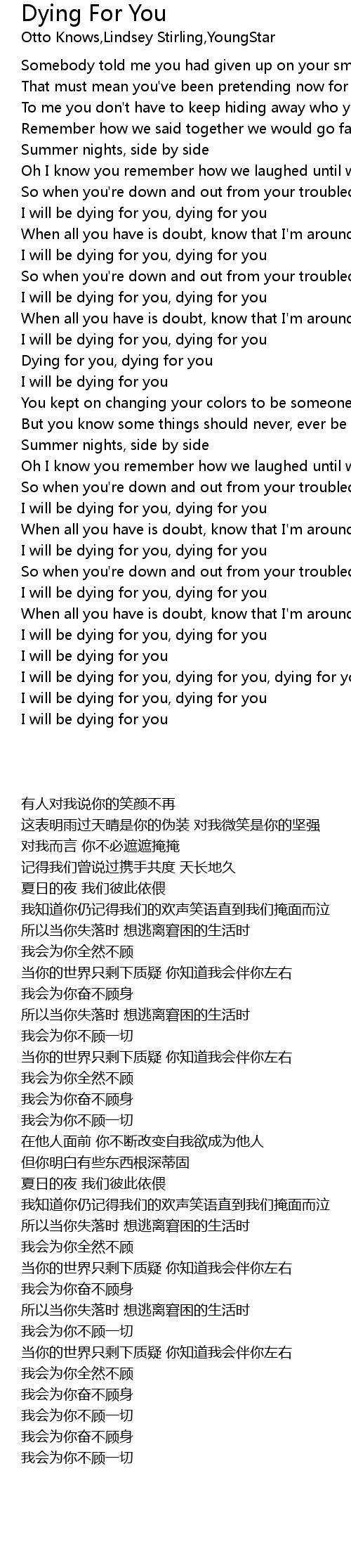 Dying for you, dying for you |