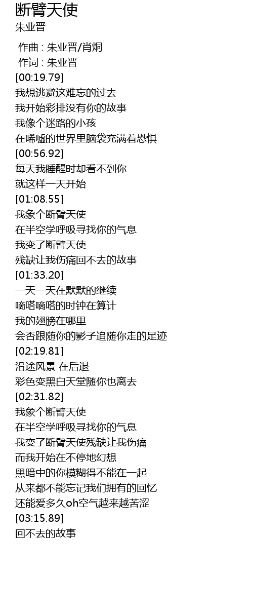 | [02:45.32] | 我变了断臂天使残缺让我伤痛 |