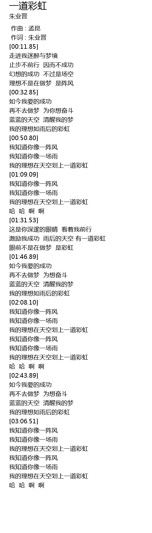 | [01:37.13] | 激励我成功 雨后的天空 有一道彩虹 |