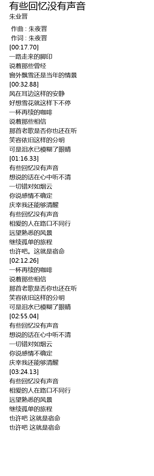 | [03:25.33] | 有些回忆没有声音 |