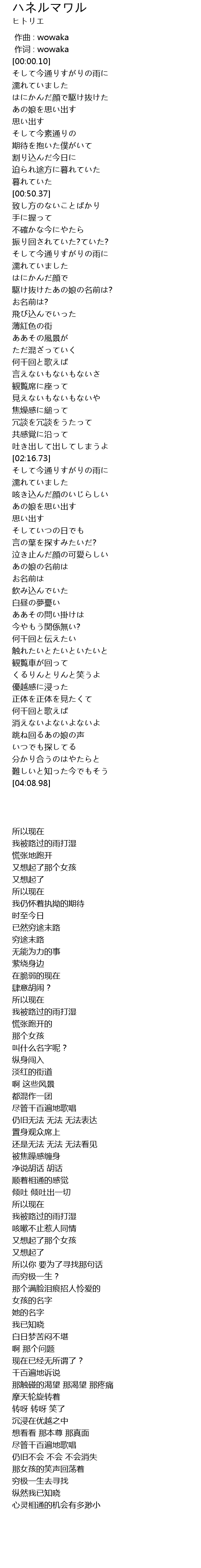 | [00:00.00] | zuo qu : wowaka |