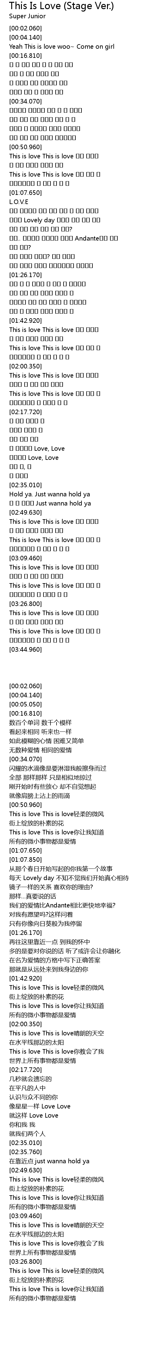 | [03:00.540] | This is love This is love |
