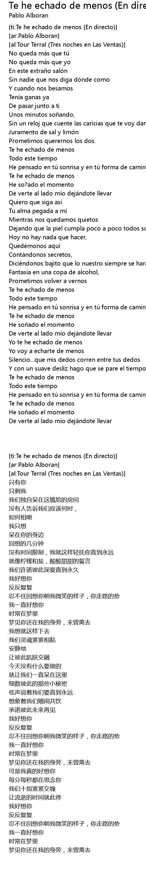 | [00:59.74] | He pensado en tu sonrisa y en tu forma de caminar |