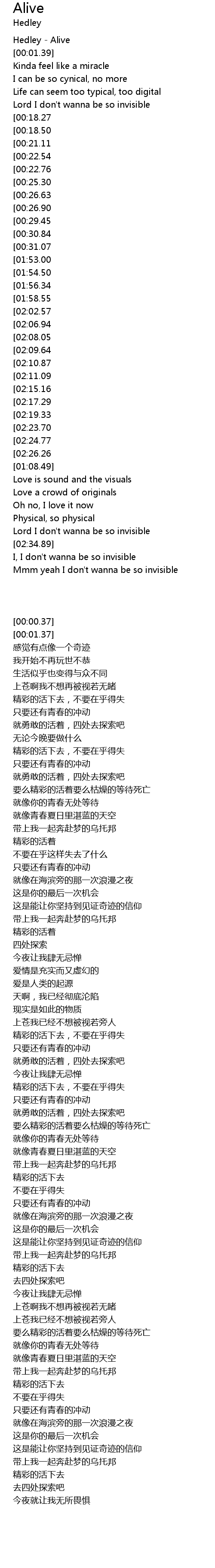 | [00:00.37] | Hedley - Alive |