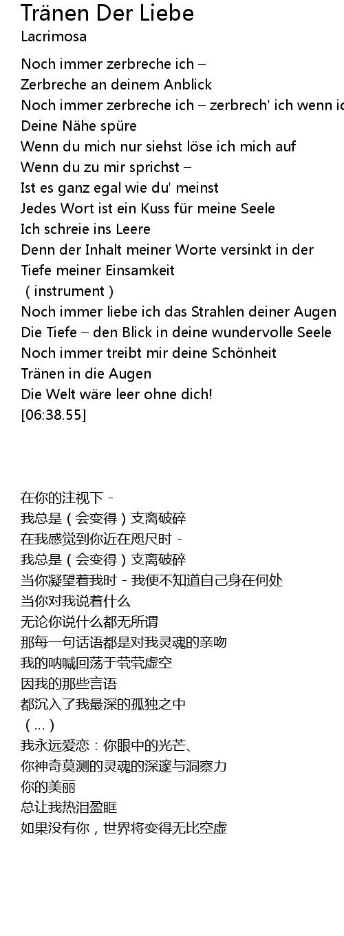 | [02:03.66] | Jedes Wort ist ein Kuss fü r meine Seele |