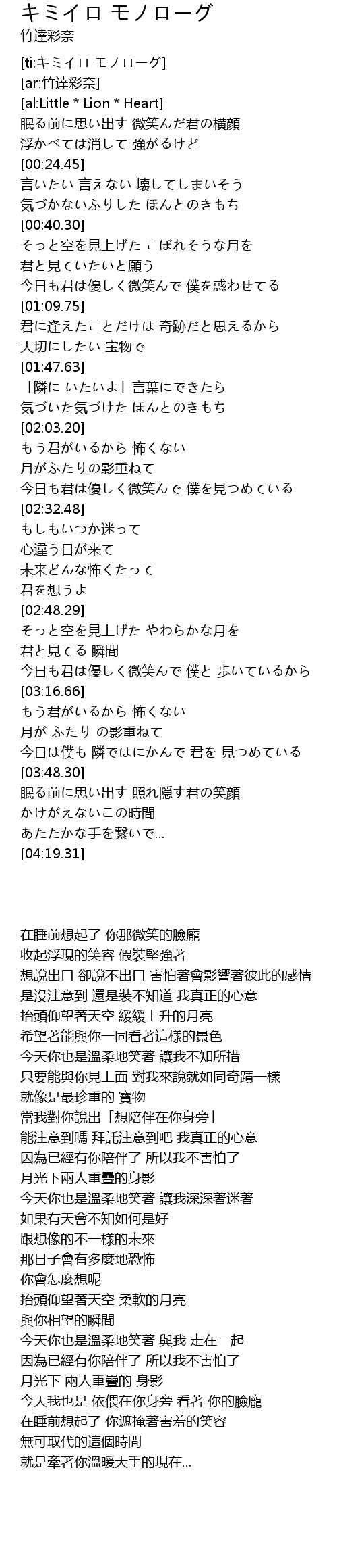 | [04:14.72] | あたたかな手を繋いで... |
