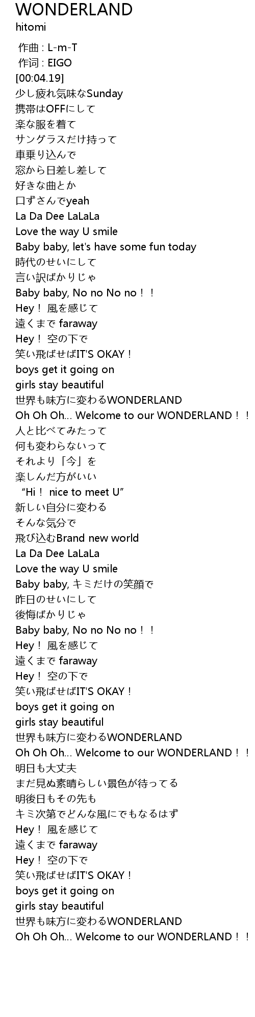 | [02:13.95] | Oh Oh Oh Welcome to our WONDERLAND!!! |