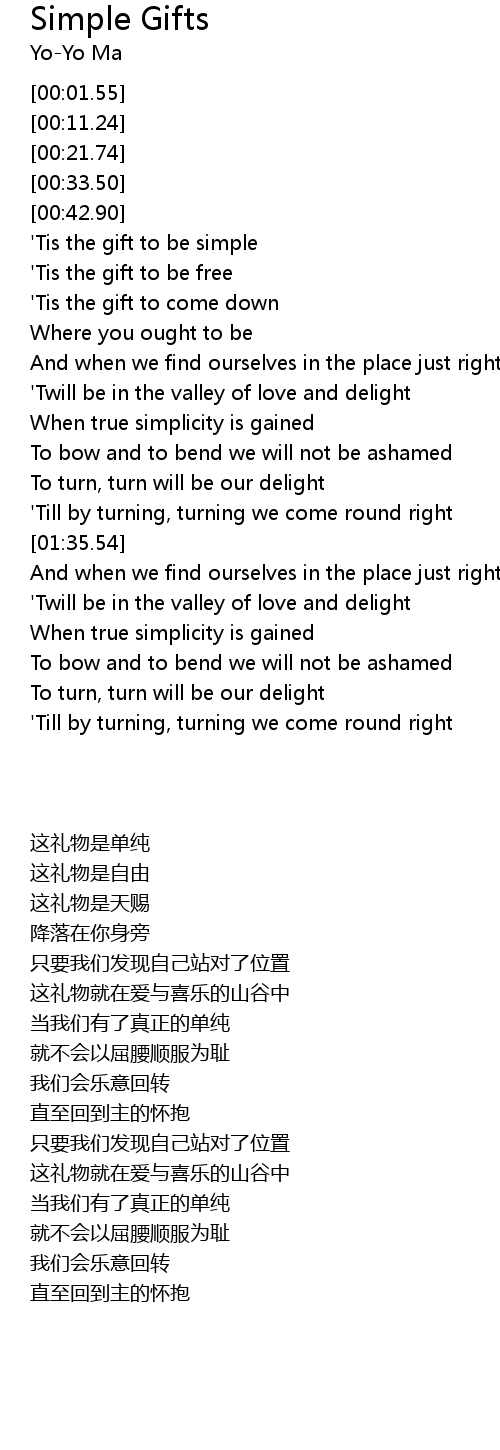 [00:45.15] 'Tis the gift to be simple