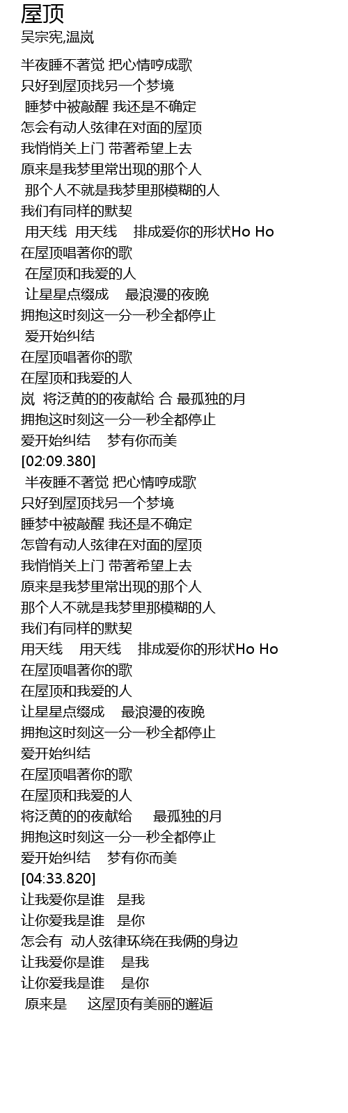 | [04:02.210] | 在屋顶唱著你的歌 |