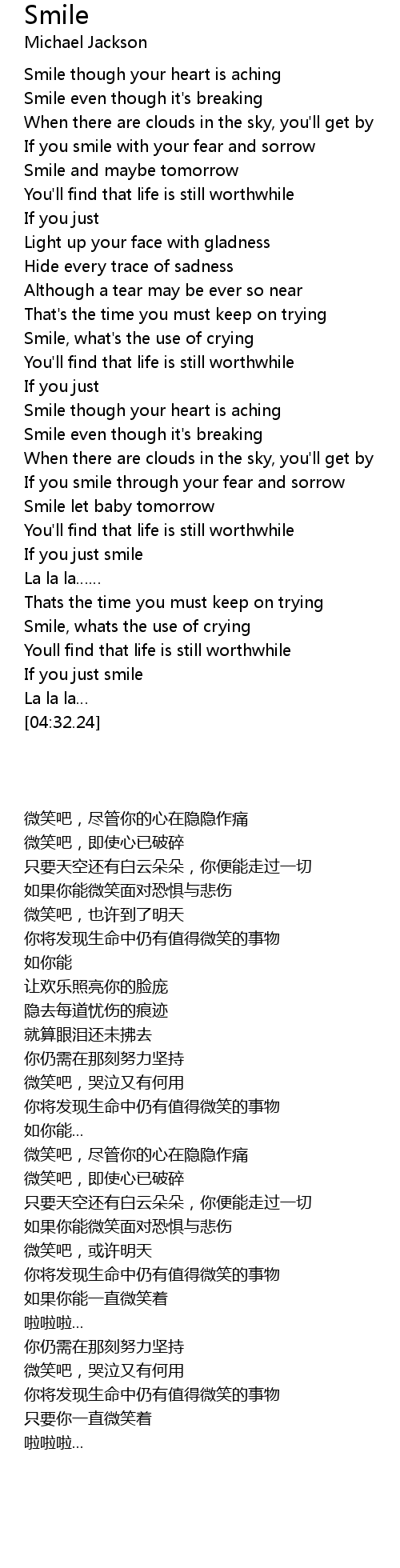 | [01:52.30] | Smile, what's the use of crying |