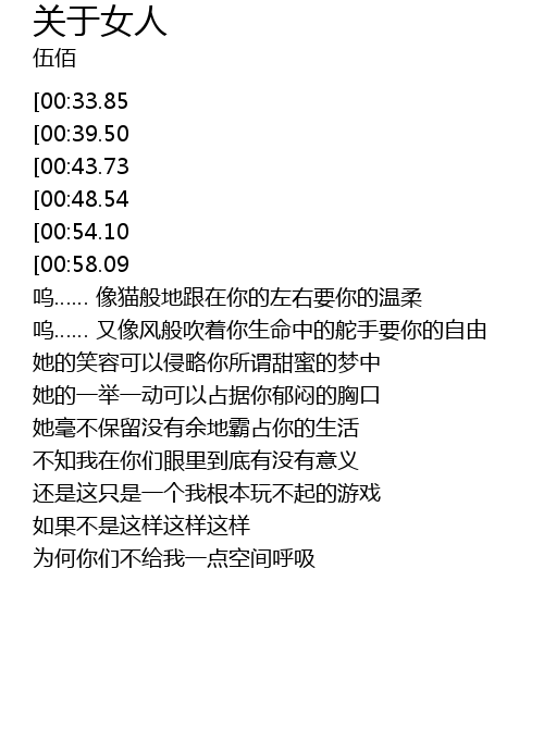 | [03:25.19][00:33.85] | guān yú nǚ rén |
