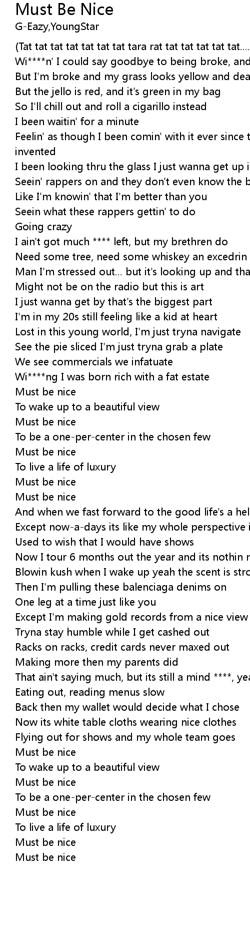 | [01:04.58] | Wi****ng I was born rich with a fat estate |