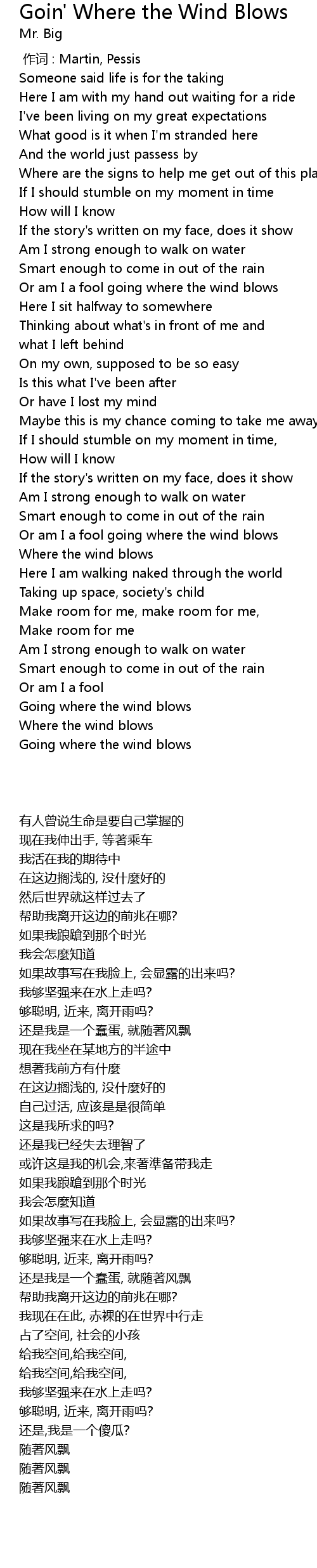 | [03:59.510] | Going where the wind blows |