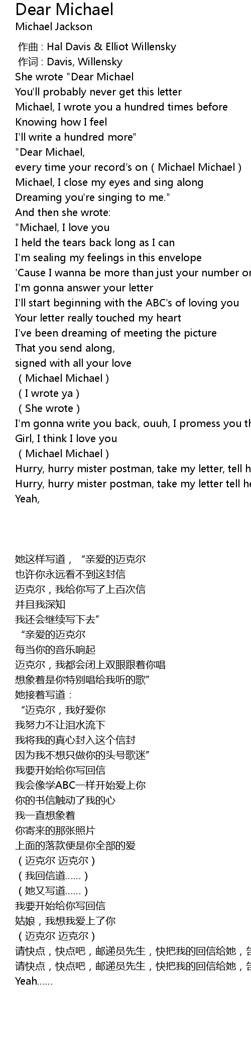 | [00:11.06] | Michael, I wrote you a hundred times before |