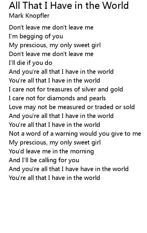 And you're all that I have have in the world |