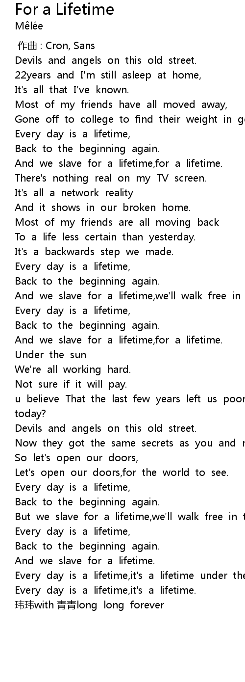 | [02:41.98] | Every day is a lifetime,it's a lifetime. |