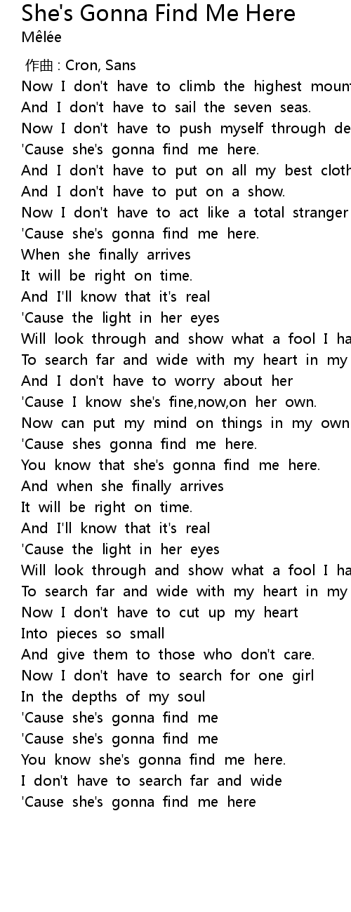 | [03:21.12] | 'Cause she's gonna find me here |