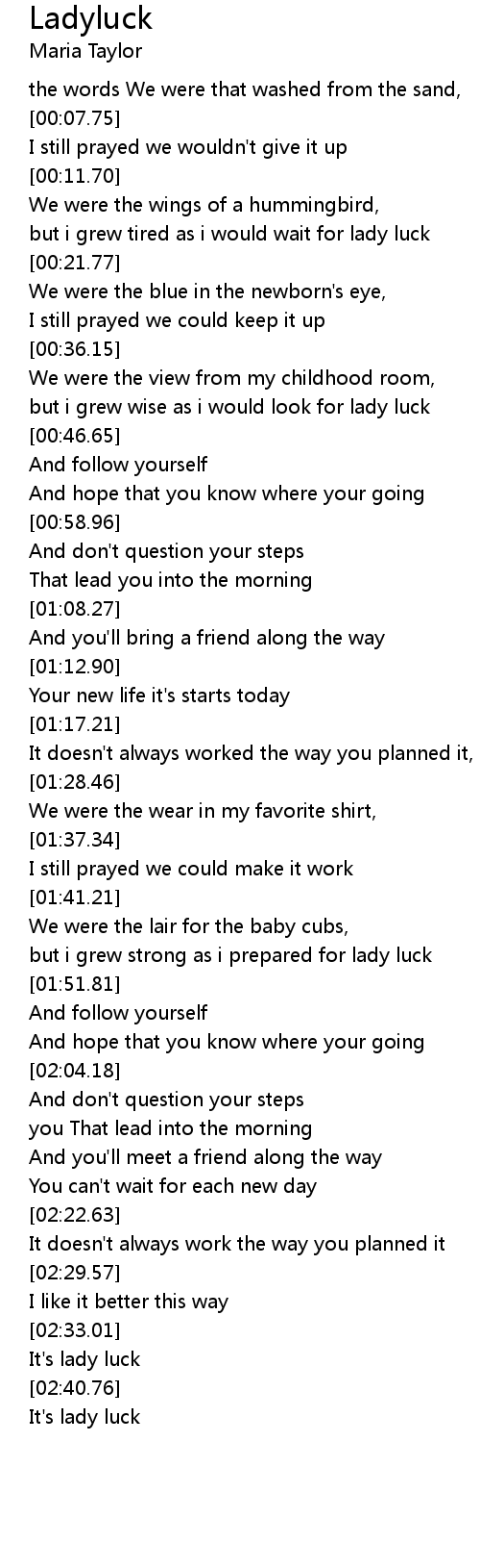 but i grew wise as i would look for lady luck |