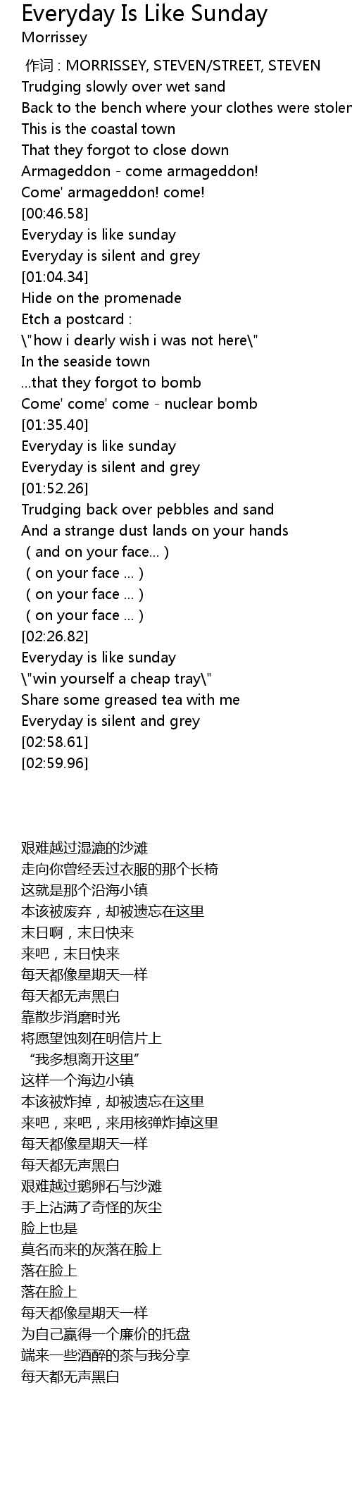 | [01:38.93] | Everyday is like sunday |