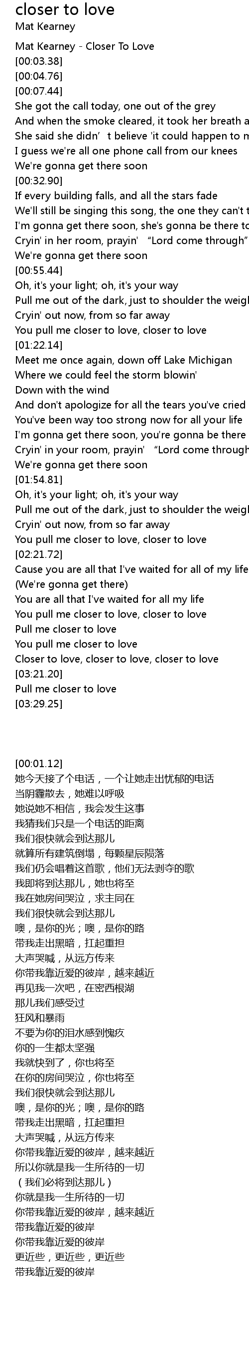 | [00:01.12] | Mat Kearney - Closer To Love |
