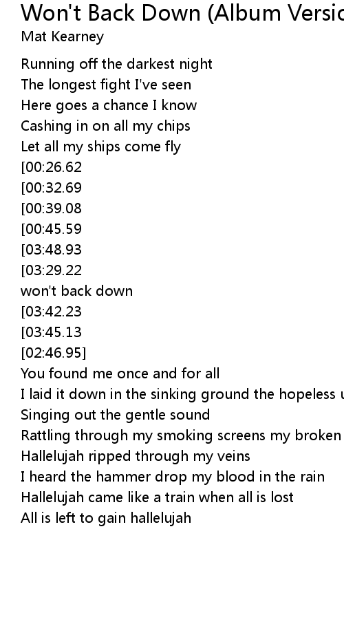 [04:02.17][03:48.93][03:23.68][02:18.50][00:52.40] And I won't back down