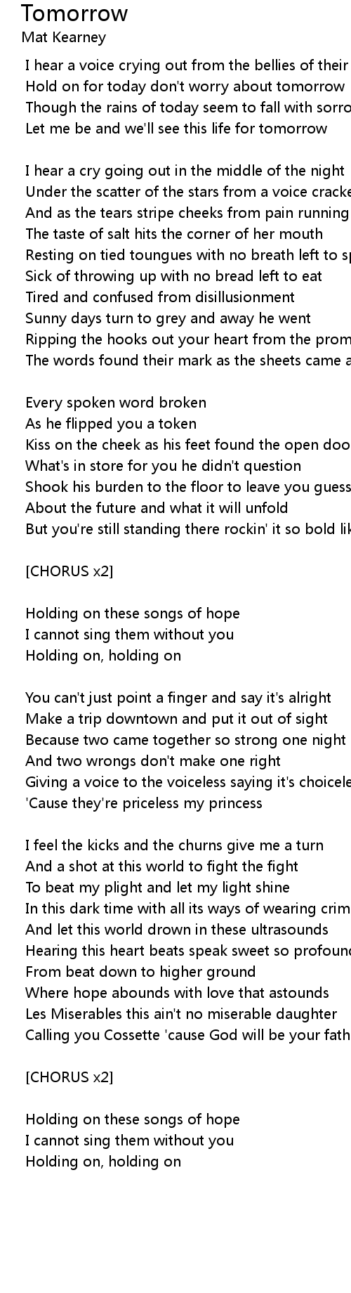 Holding on these songs of hope |