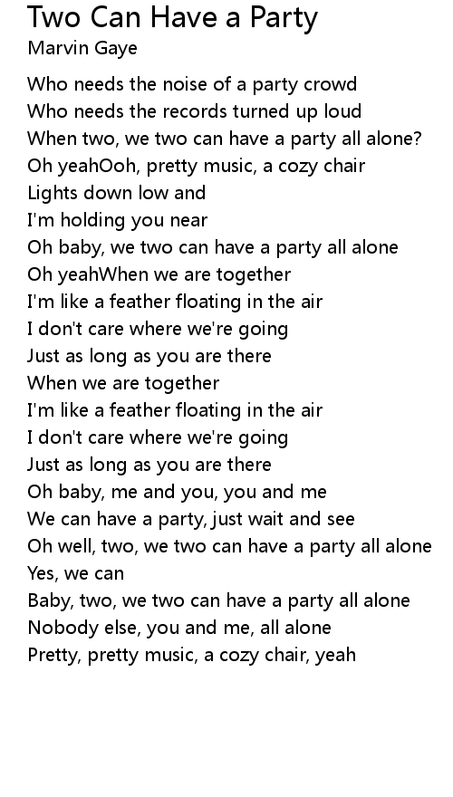 Oh well, two, we two can have a party all alone |