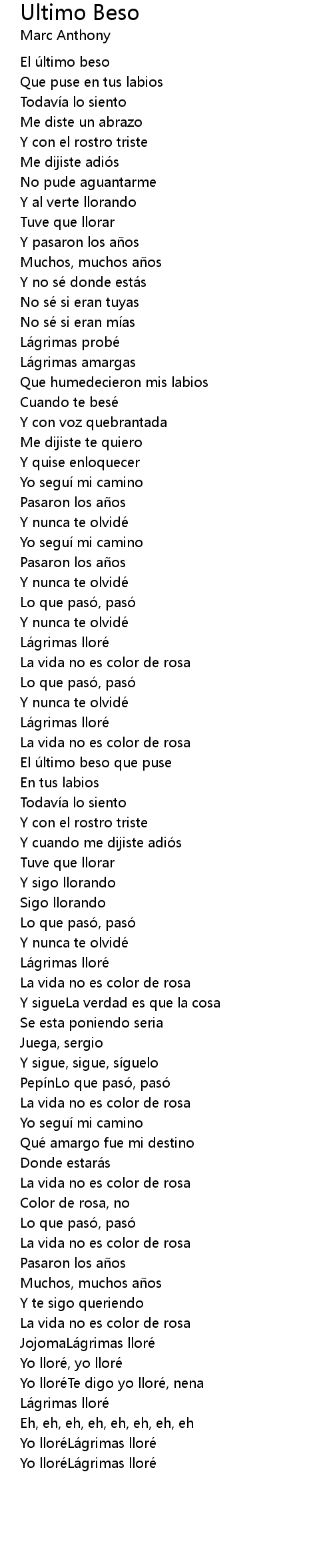 | Yo lloréTe digo yo lloré, nena | |