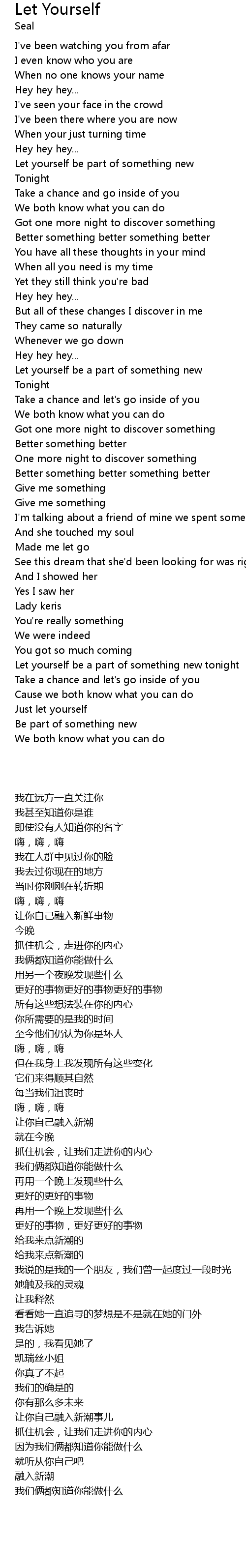 | [03:18.17] | Let yourself be a part of something new tonight |