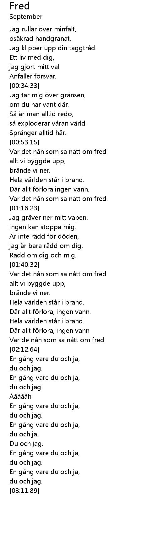 | [02:09.84] | Var de n n som sa n tt om fred |