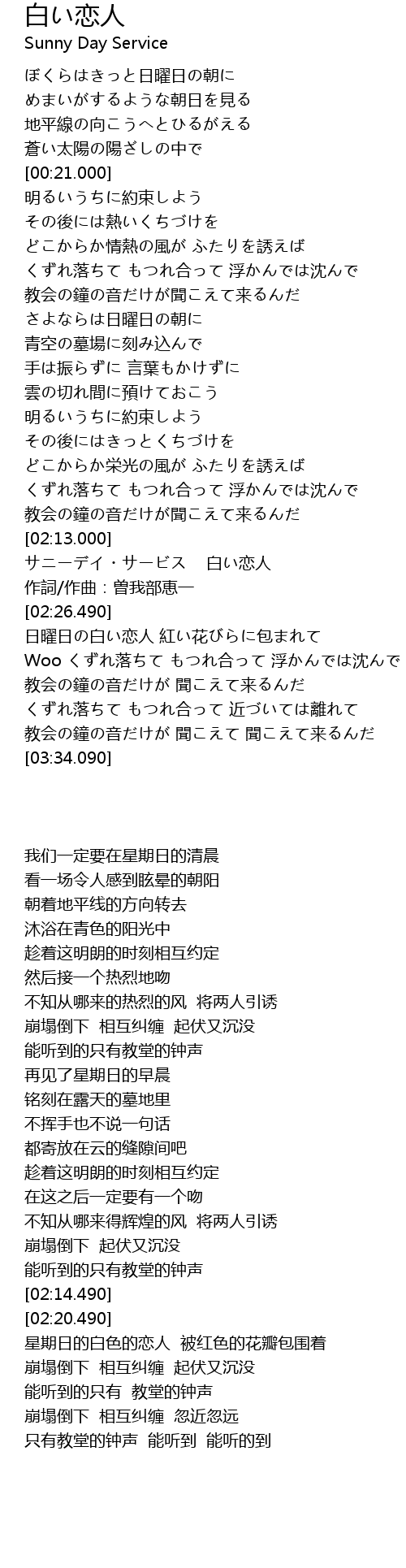 | [02:34.490] | 日曜日の白い恋人 紅い花びらに包まれて |