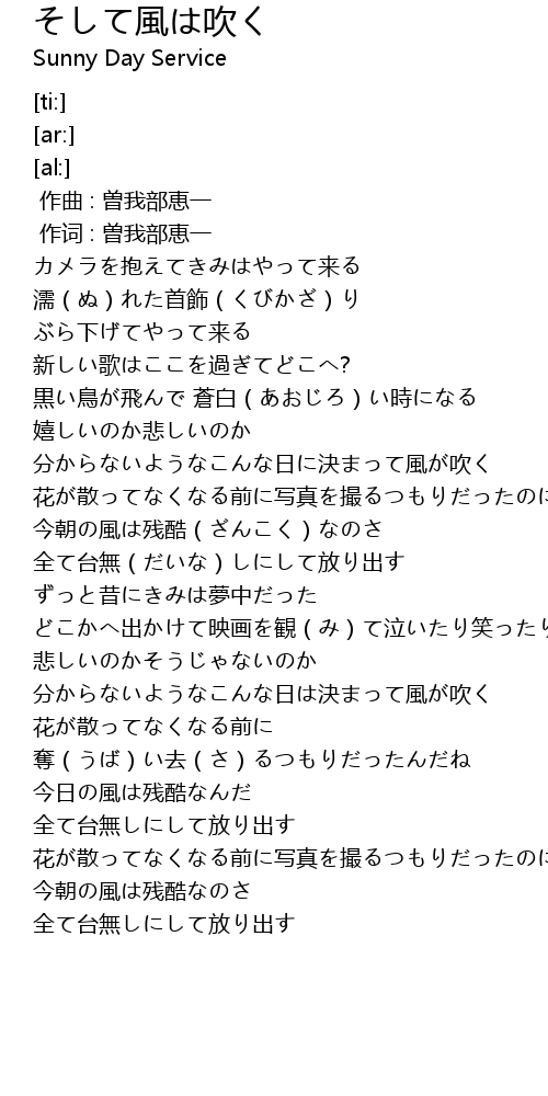 | [00:00.00] | 作曲 : 曽我部恵一 |