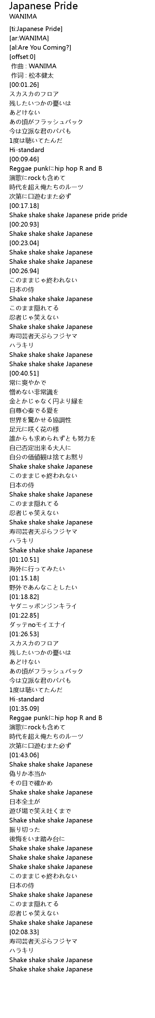 | [00:17.85] | Shake shake shake Japanese pride pride |