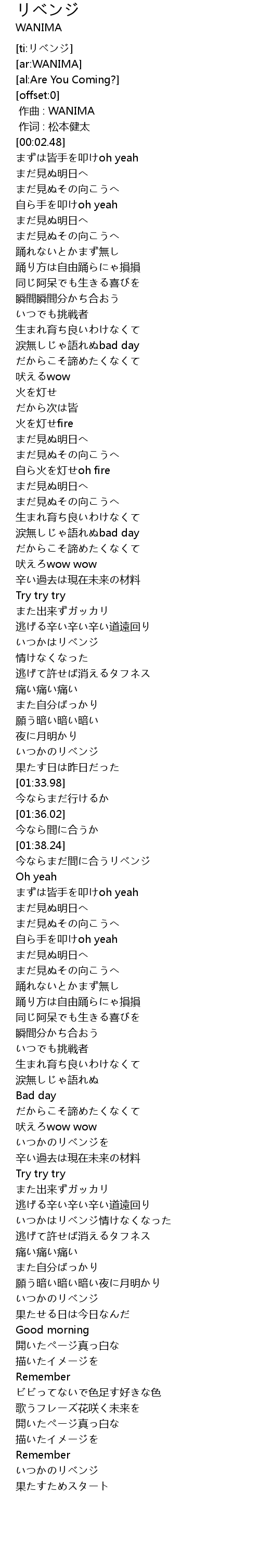 | [00:00.00] | 作曲 : WANIMA |