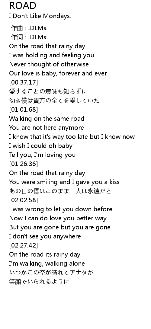 | [02:28.76] | On the road its rainy day |