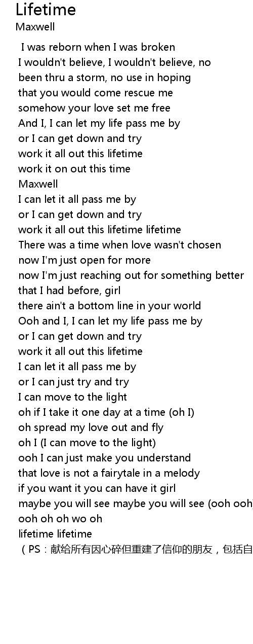 | Song | Lifetime |